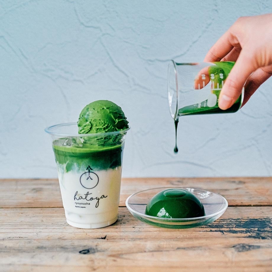 京都でも少ししか収穫されない⼿摘みの抹茶のみを使⽤し、抹茶本来の旨みをとことん追求した究極の抹茶ラテに同じ茶葉をふんだんに使って仕上げた無上抹茶アイスクリームをトッピングして、この上なく贅沢な仕上がりに。さらに今回初登場の、⼿摘み抹茶のみで仕上げた旨み感じる⼋⼗⼋ゼリー。⼝の中で溶ける抹茶の味わいをぜひ⼀緒にお楽しみください。