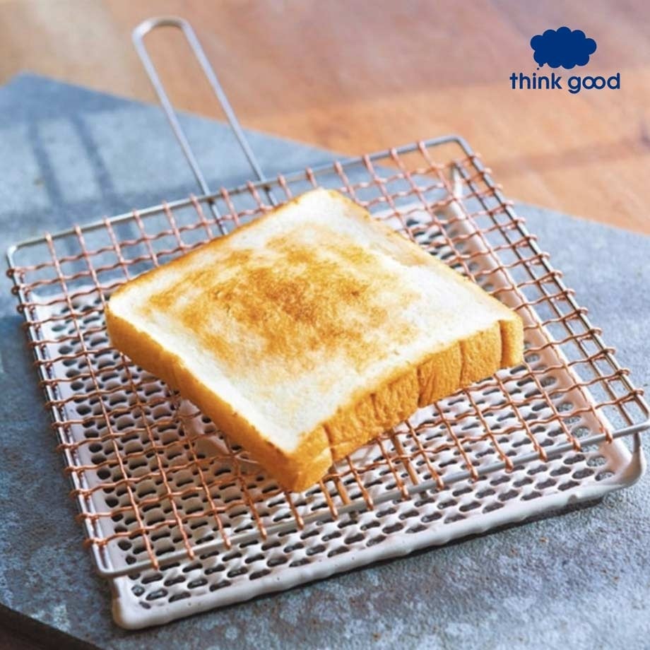 ガス⽕でパンやお餅、野菜がカリッと焼けるセラミック付焼き網。遠⾚外線の⼒により、熱がまんべんなく⾏き渡ります。
