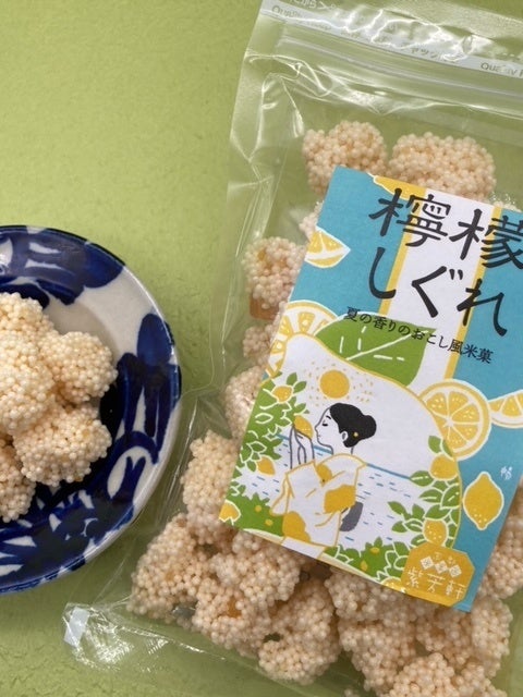 米粉を小さな粒にして仕上げたおこし風米菓を瀬戸内産のレモンの皮と果汁で味付けしました。
