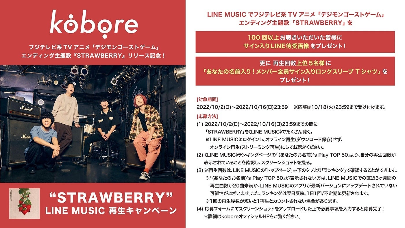 また、「STRAWBERRY」のLINE MUSIC再生キャンペーンは10月16日(日)23:59まで開催中。