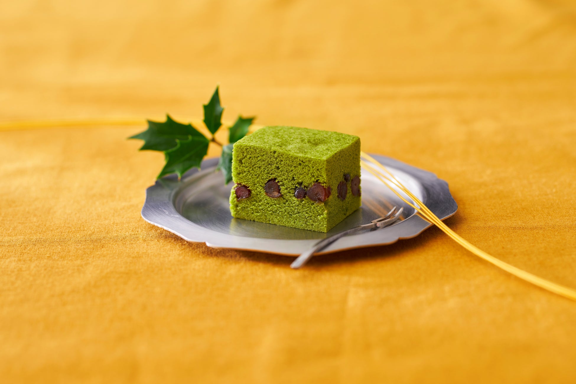 しっとりとした浮島の抹茶生地に北海道産大納言小豆が入った人気の山野草を阪急うめだ本店限定の抹茶風味に仕立てました。