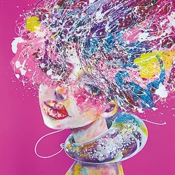 現代女性の心象風景を独自の視点で描き続けるアーティスト。「Attraction And Anima」生きることの本質を探求し、女性や生命の輝きを描写することに焦点を当てています。スパッタリング技法を巧みに用い、豊かな愛情と鮮やかな色彩で構成された作風が特徴です。