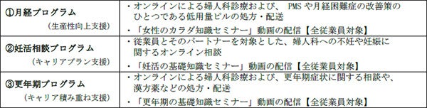診療はオンラインで受診することができ、婦人科への通院時間が限られる場合でも利用がしやすくなっています。本サービスの導入により、女性従業員がさまざまなライフステージにおいて向き合う健康課題を社内全体で支援し活躍を推進します。また、プログラムには、男性も含めた全従業員を対象にした婦人科医師監修のセミナー動画配信を取り入れ、正しい知識を習得して理解を深めることでリテラシーを高め、働きやすい職場づくりに取り組んでまいります。