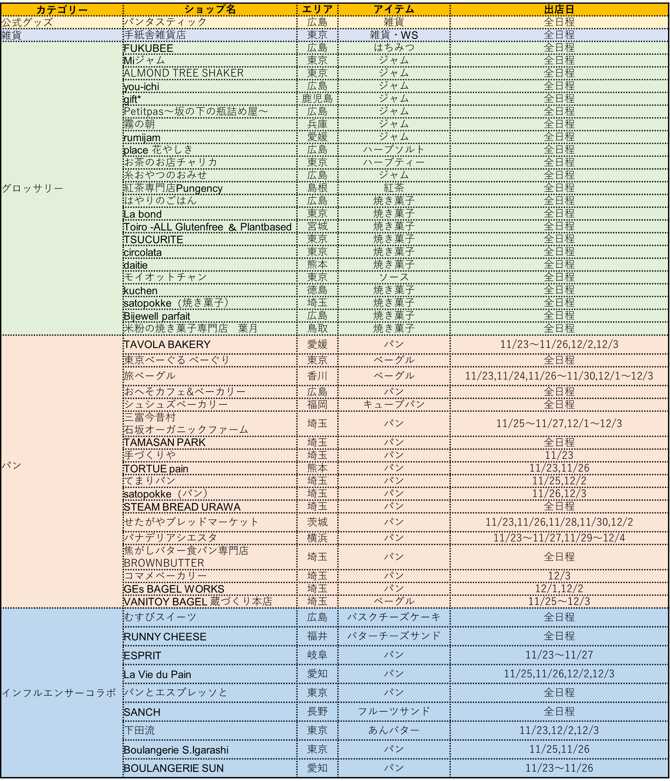 ※参加ショップ及び参加日程、パンの到着時間は予告なく変更になる場合がございますので予めご了承ください。