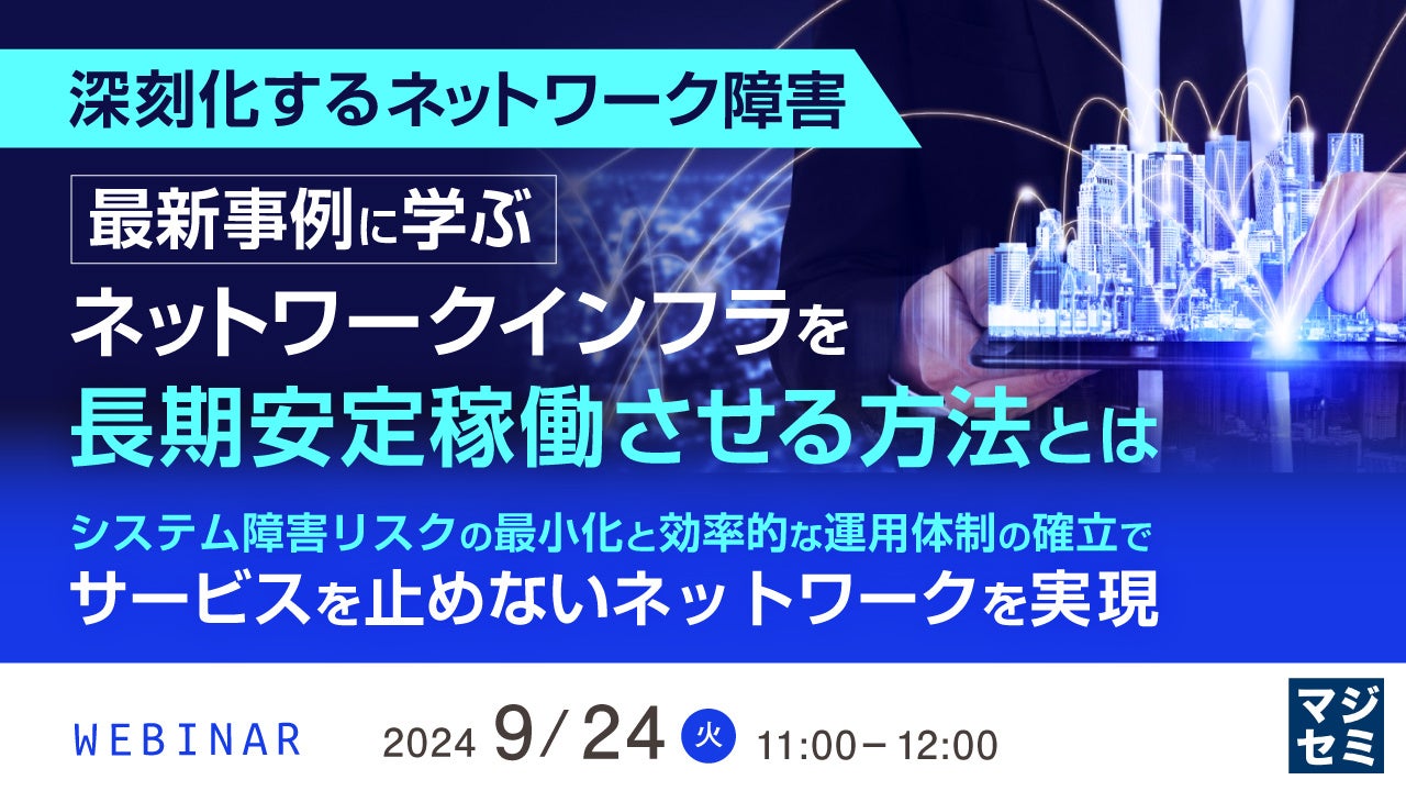 マジセミ株式会社は「【深刻化するネットワーク障害】最新事例に学ぶ、ネットワークインフラを長期安定稼働させる方法とは」というテーマのウェビナーを開催します。