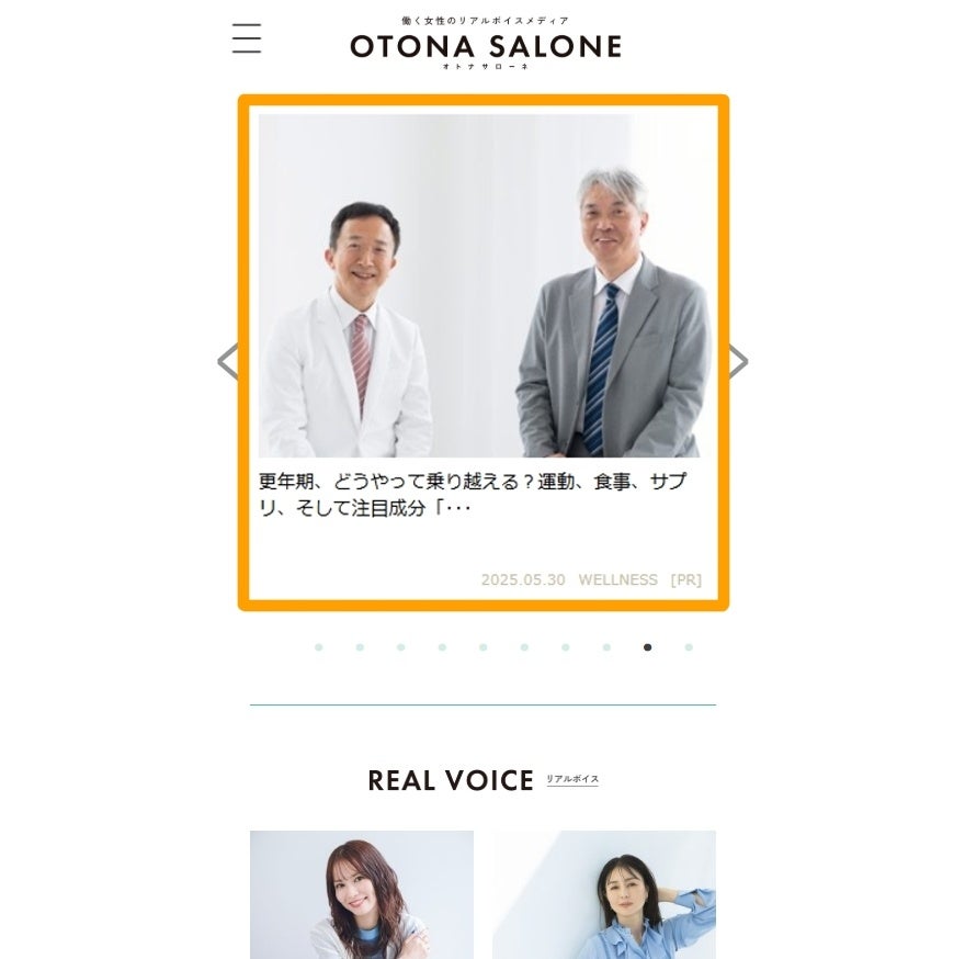 どの記事も40〜50代の「ゆらぎ年代」に有益な情報ばかりで、更年期によるホットフラッシュやイライラ、骨粗しょう症、手指のこわばりなど、女性の健康に関わるテーマを幅広く取り上げています。