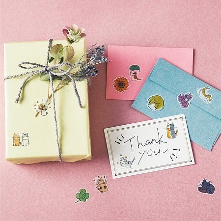 猫と季節のお花がセットになった、ダイカットのマスキングテープです。