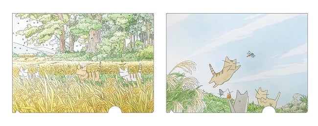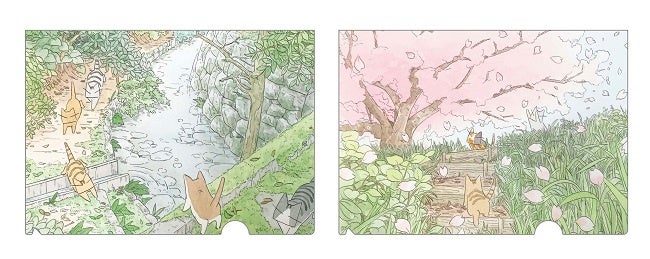 四季折々の日本の風景と自由気ままな猫たちの姿に癒やされる、日本画家 久保 智昭さんとつくった「里山の季節をめぐるクリアファイルセット」がフェリシモ「猫部™」から登場