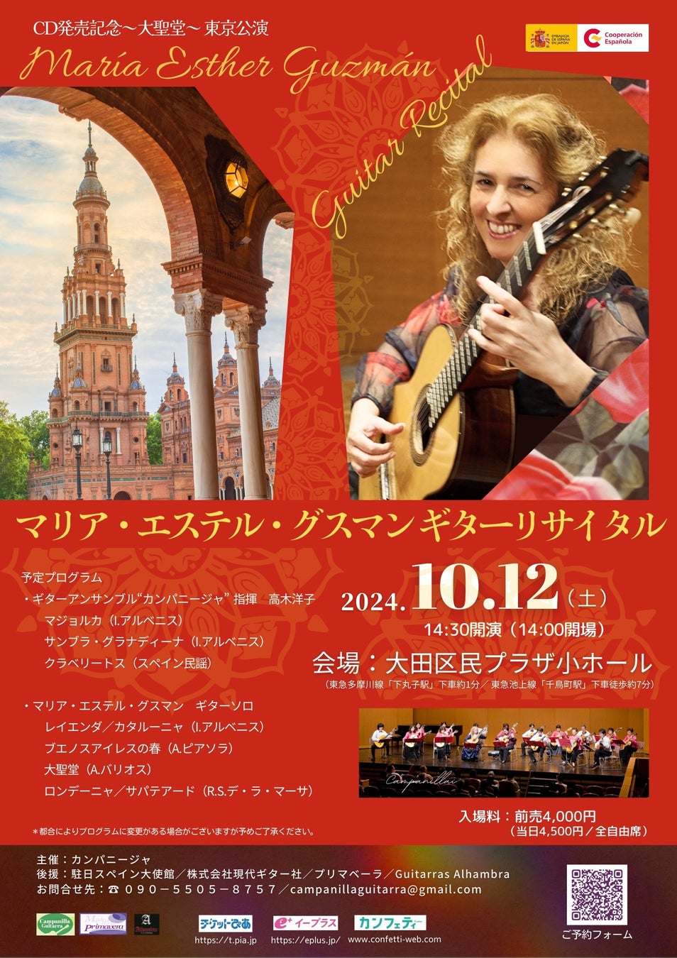 スペインから今年も来日!『ギターの女王』マリア・エステル・グスマン CD発売記念コンサート「大聖堂」横浜・東京にて開催決定