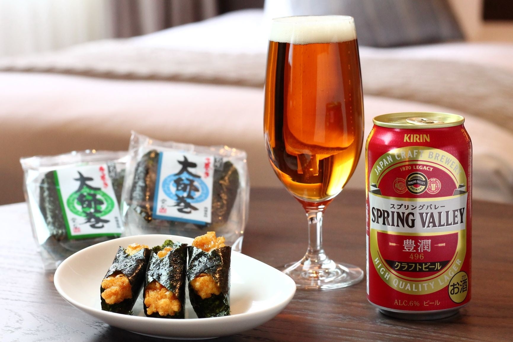 新型コロナウイルスの感染症拡大の影響に伴い、企業の出張形態が変化する中、川崎日航ホテルでは、ビジネスパーソンを応援する宿泊プランを販売いたします。本プランはお部屋で安心して寛げるように、地元川崎の銘菓とビールをお付けしました。地元川崎の銘菓には、その美味しさから販売店では行列が絶えず、入手困難とも言われる川崎の老舗「堂本製菓」の“大師巻”をご用意しています。神奈川県指定銘菓の一つとしても知られ、サクッとした軽やかな歯ごたえの煎餅に、美味しい海苔を一つひとつ手巻きした人気の米菓です。職人の手作業によって作られるなかなか味わうことの出来ない米菓を、ビールのおつまみとして楽しむことができます。ビールは老若男女に人気があり、贅沢な気分が味わえるキリンビールのクラフトビール「SPRING VALLEY 豊潤<496>」をご用意しています。豊潤でコクのある深い味わいがお楽しみいただけます。