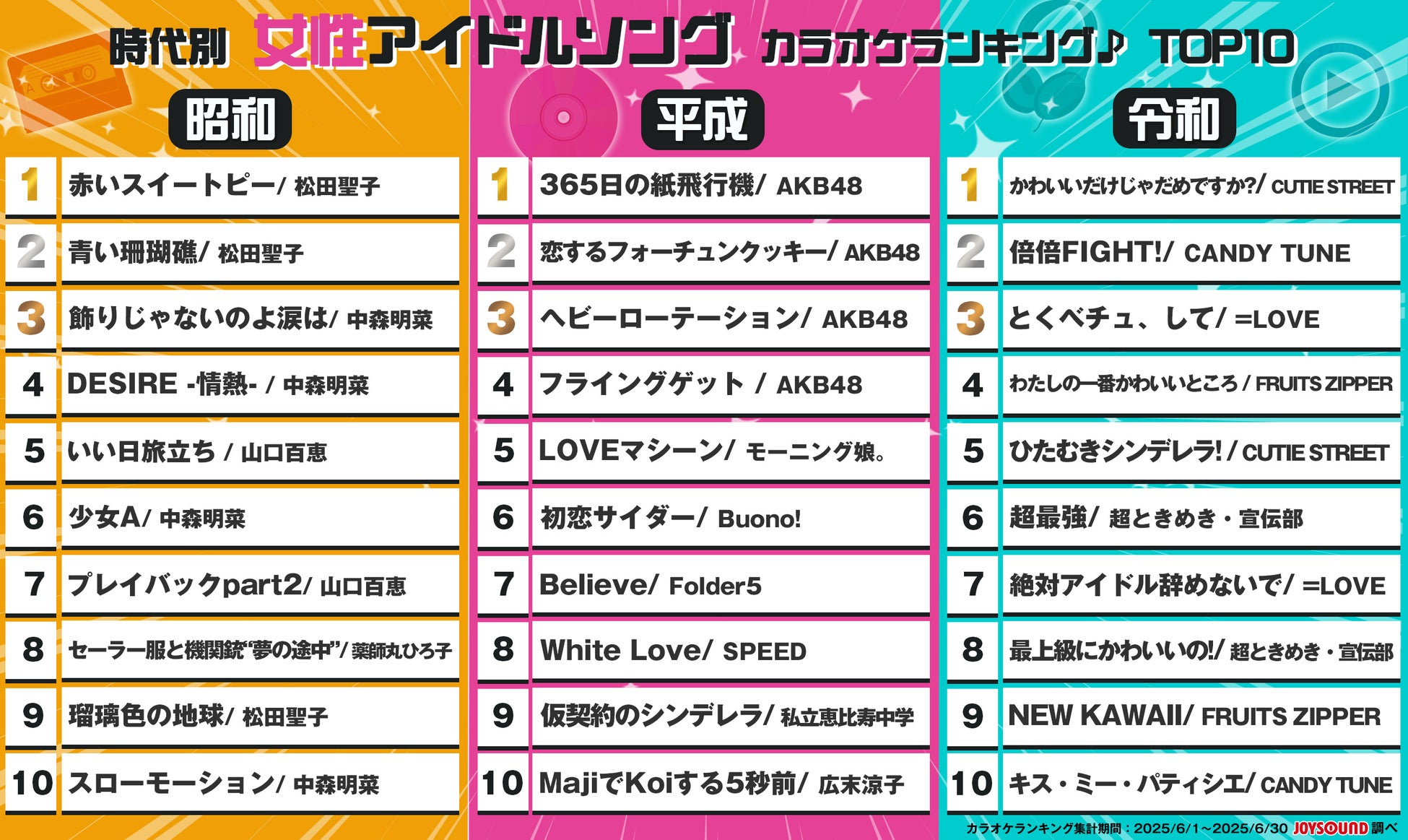 世代を超えて歌われる鉄板曲は!?JOYSOUNDが昭和・平成・令和のアイドルソングを徹底解剖!「アイドルソング カラオケランキング」を発表!