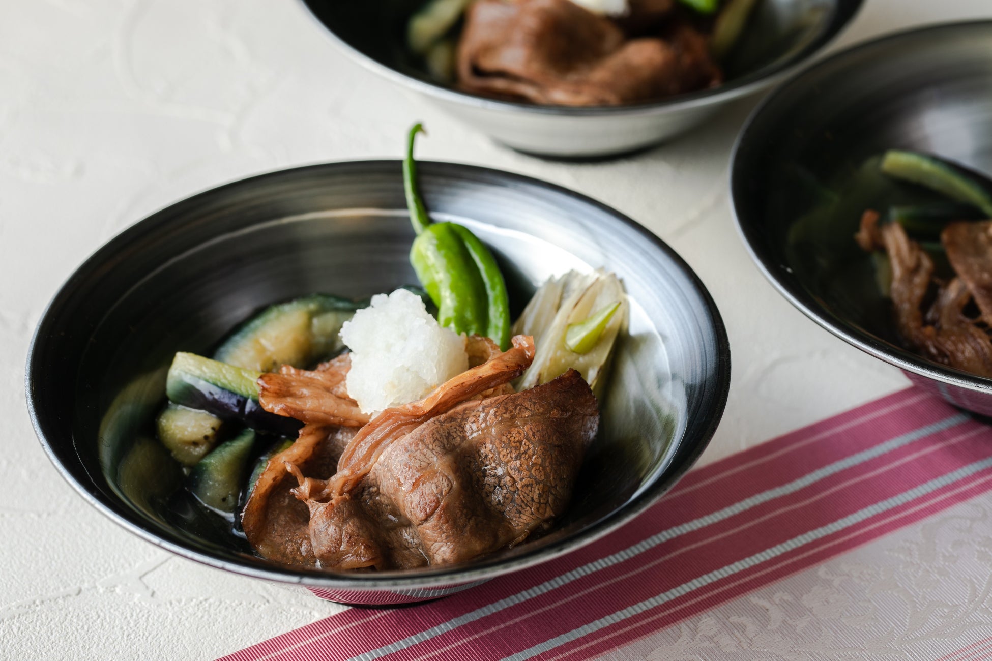 福岡県内産の稲わらを主食として育てられ、柔らかい肉質と濃厚な旨みが特徴の “博多和牛”の焼しゃぶや、程良い弾力と噛むほどに増す旨みが特徴の“はかた地どり”の水炊きなど、福岡食材の素材の味を存分に活かしたメニューの数々をご提供。また、福岡名物“ギョロッケ”や “がめ煮”、“かしわ飯”など、福岡県の郷土料理をアレンジしたメニューもご用意しております。