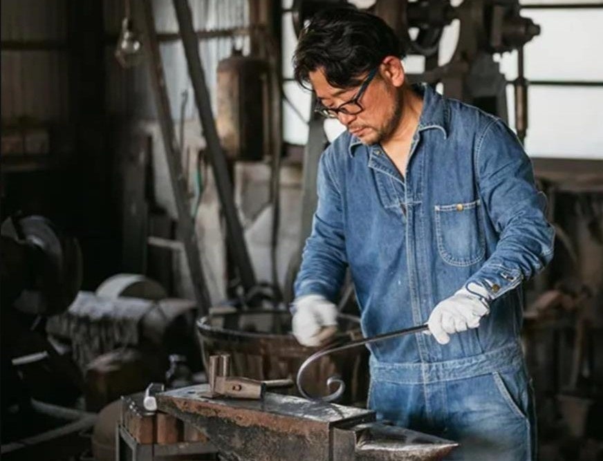 東京の建築設計事務所で、住宅や店舗設計を行っていた明さんは、鉄製の門扉や階段の手すりなどを発注する側でした。実家は野鍛冶の工場でしたが、「ロートアイアンは作れないだろうか?」と跡を継ぐことにします。その後海外研修の機会を得て、イタリア・オルヴィエトの工房で鍛鉄の技術を習得。2000年に樺山鍛治工場の洋鍛冶部門として「リブラ工房」を設立しました。伝統的な刃物製作と並行し、フェンスや門扉、看板や手すりなど、デザインスケッチから製作までを行い、日々の生活を面白く、豊かにするような作品作りを心掛けています。