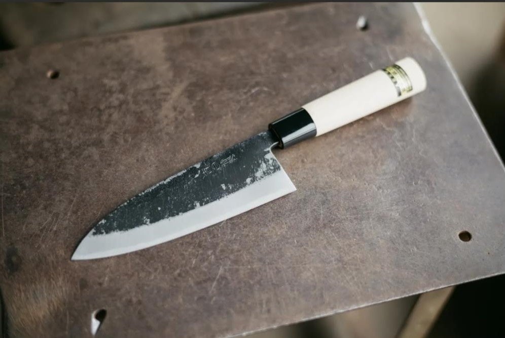 両刃仕上げなので利き手に関係なく使える出刃包丁。片刃に比べ刃が強いので、魚なども骨ごとぶつ切りにできます。蓑毛㊀鍛冶屋の包丁は主に一般家庭向けですが、片刃づくりの刺身包丁や出刃包丁などはプロも使用します。また、人吉市のふるさと納税返礼品として選ぶこともできます。