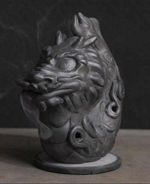 今年の干支にちなみ、龍をモチーフに日常使いできるようにと制作。全長18㎝で、両面を型抜きして一つにつなぎ合わせるなど、完成までに1カ月ほどを要します。お香を炊くと、口や体の穴から煙が流れ出て、まるで龍の息吹のように見えます。