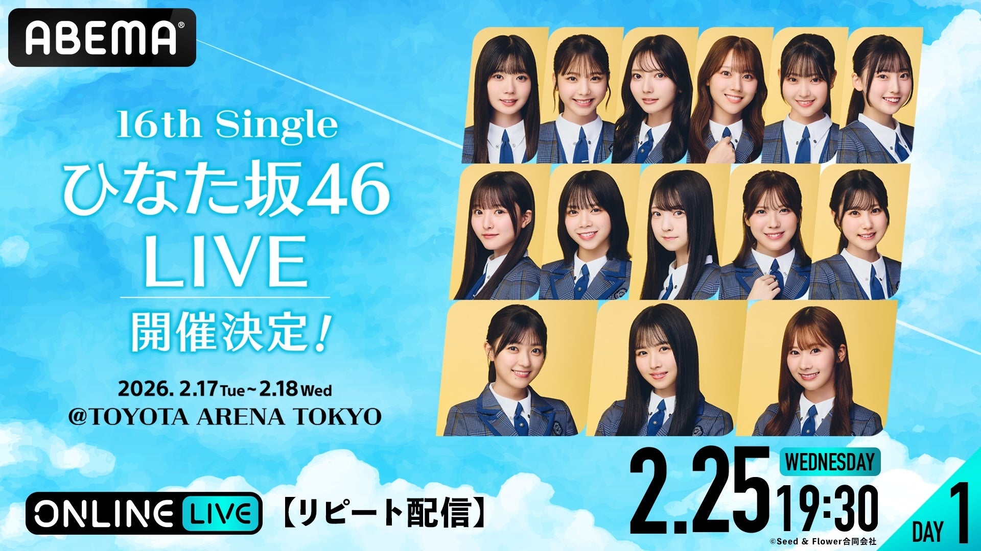 日向坂46『16th Single ひなた坂46 LIVE』の模様を「ABEMA PPV」にて2026年2月17日(火)・18日(水)18時30分より生放送決定