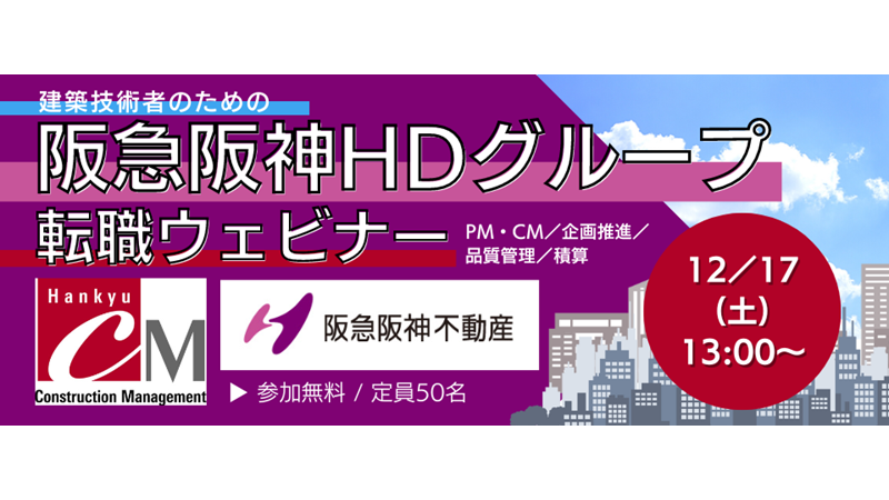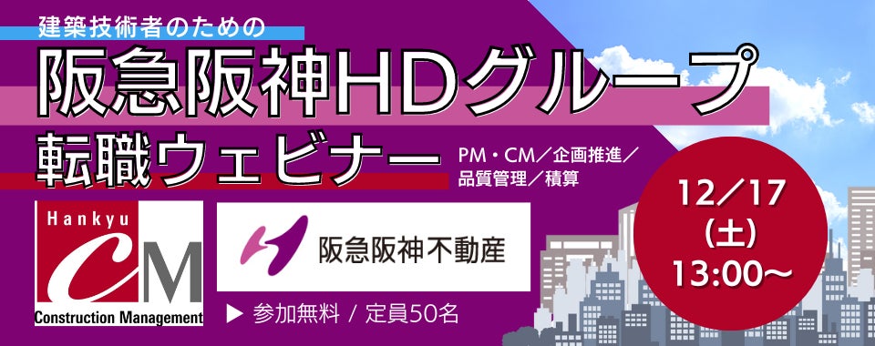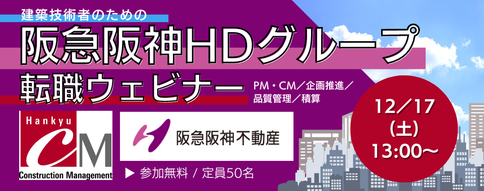 【50名限定】PM・CM・品質管理など、建築技術者向け 12/17(土)阪急阪神HDグループ転職ウェビナー