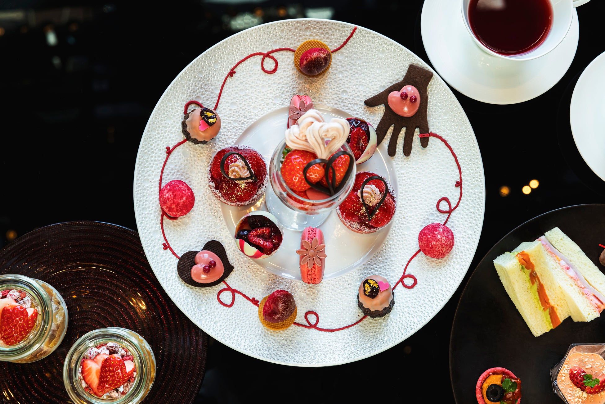 毎年人気のストロベリーアフタヌーンティーは、大切な人や恋人、ご家族への愛情や感謝をテーマにプレートを表現。 手からつながる赤い糸の上にハートやピンクのスイーツを並べ、たくさんの愛を結びつけます。これからの季節に旬を迎えるストロベリーの甘酸っぱさをたっぷりと味わえるパティシエこだわりのアフタヌーンティーをご用意しました。