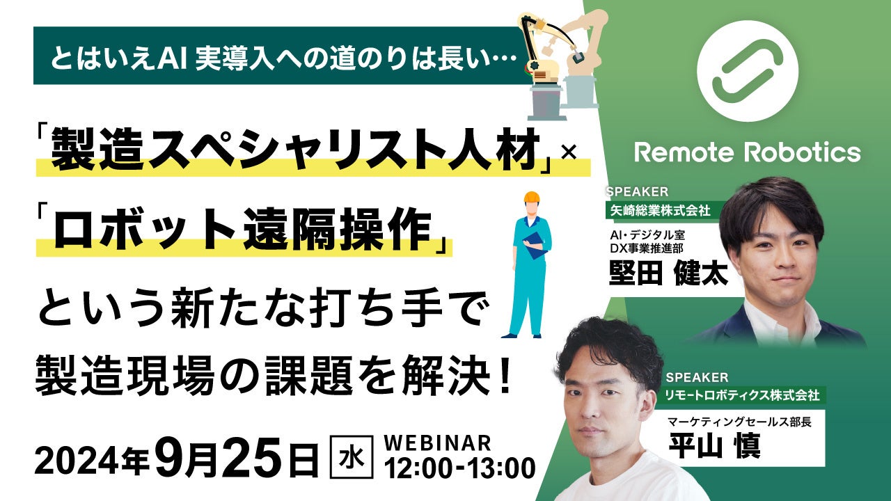 マジセミ株式会社は「とはいえAI実導入への道のりは長い・・・「製造スペシャリスト人材」×「ロボット遠隔操作」という新たな打ち手で製造現場の課題を解決!」というテーマのウェビナーを開催します。