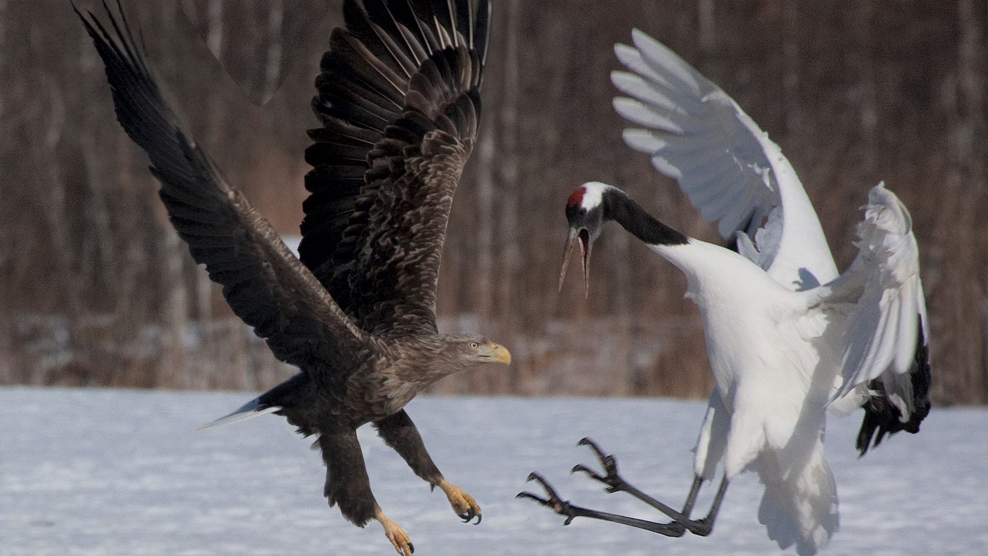 特別天然記念物であるタンチョウは、一度は絶滅したと思われていた幻の瑞鳥。白、黒、赤の美しいコントラストと気品に満ちた佇まいは、湿原の神とも呼ばれています。真っ白な雪原に舞うタンチョウは冬の風物詩とされ、幻想的な光景を望むことができます。 3月中旬頃まで見ることができますが、2月下旬ごろまでがおすすめです。