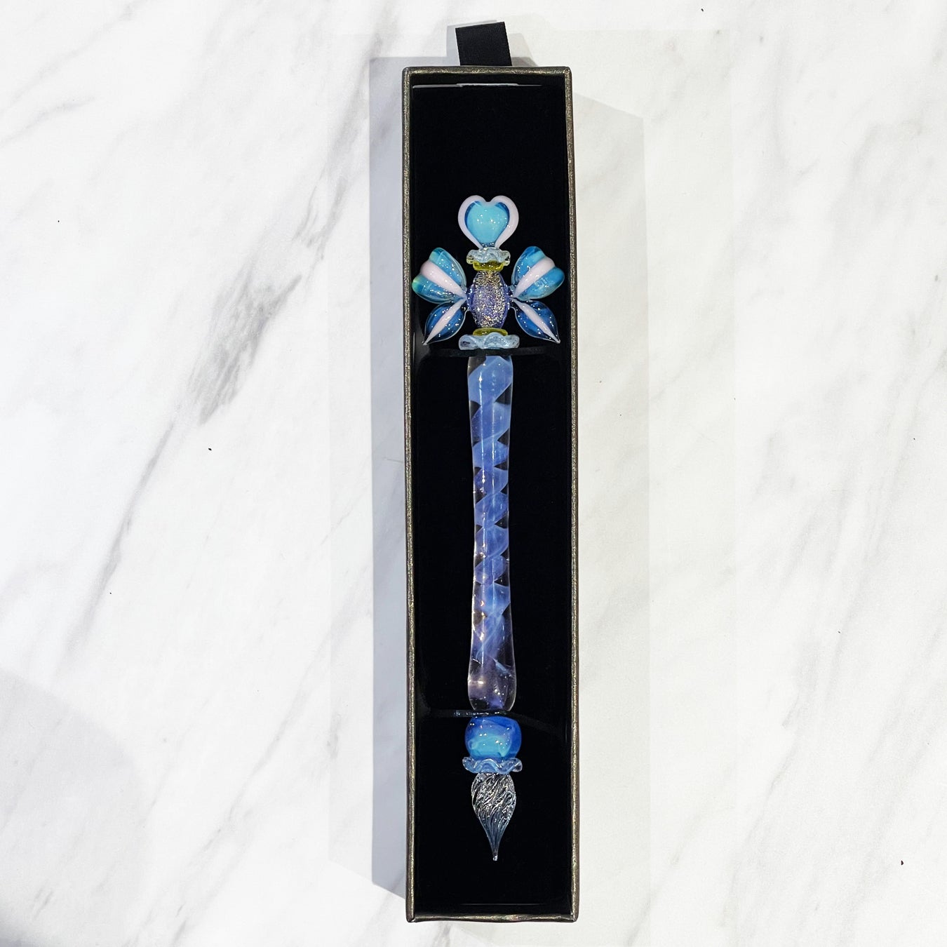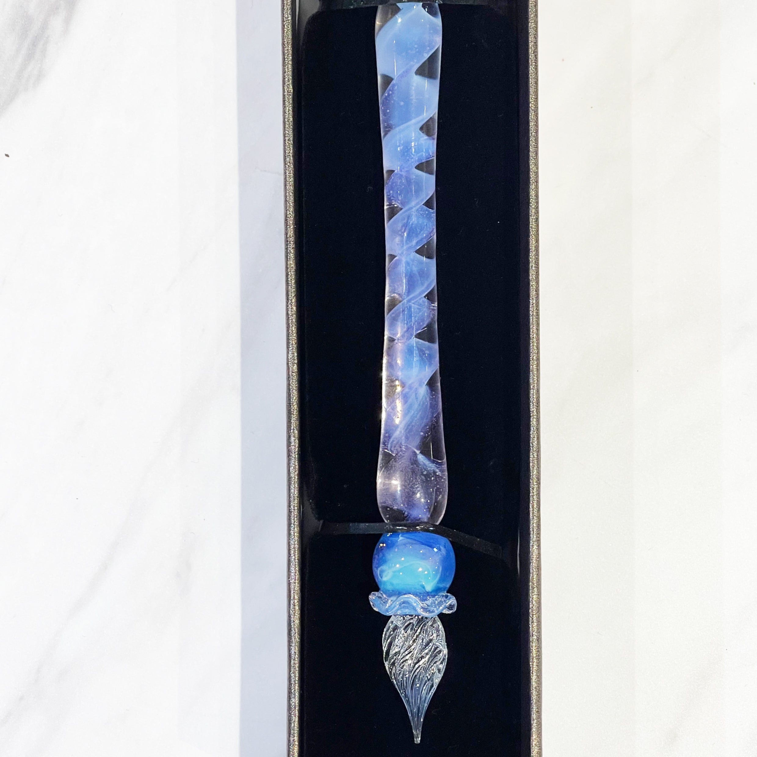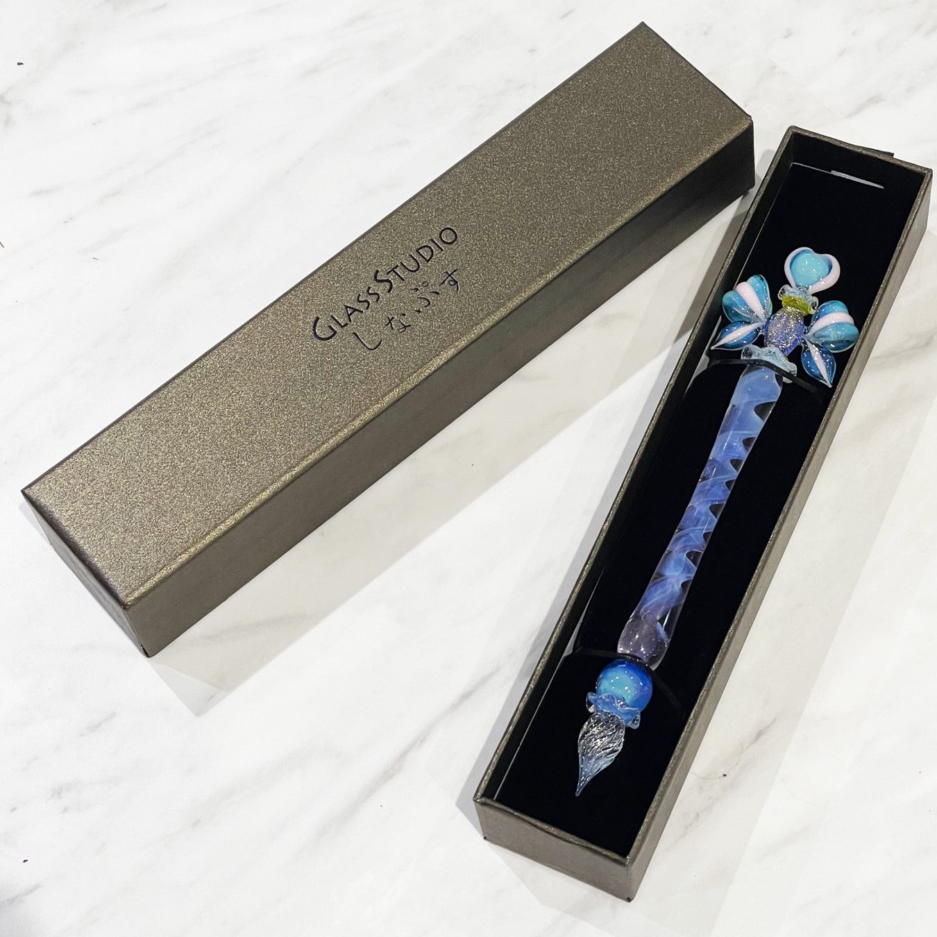 プリキュアシリーズ第 20弾「ひろがるスカイ!プリキュア」 のキュアスカイから着想を得て表現しております。実用性と芸術性を兼ね備えたガラスペンは、並木氏一人が1本ずつ全て手作りをしており、1点モノとして希少性の高いアイテムと言えます。