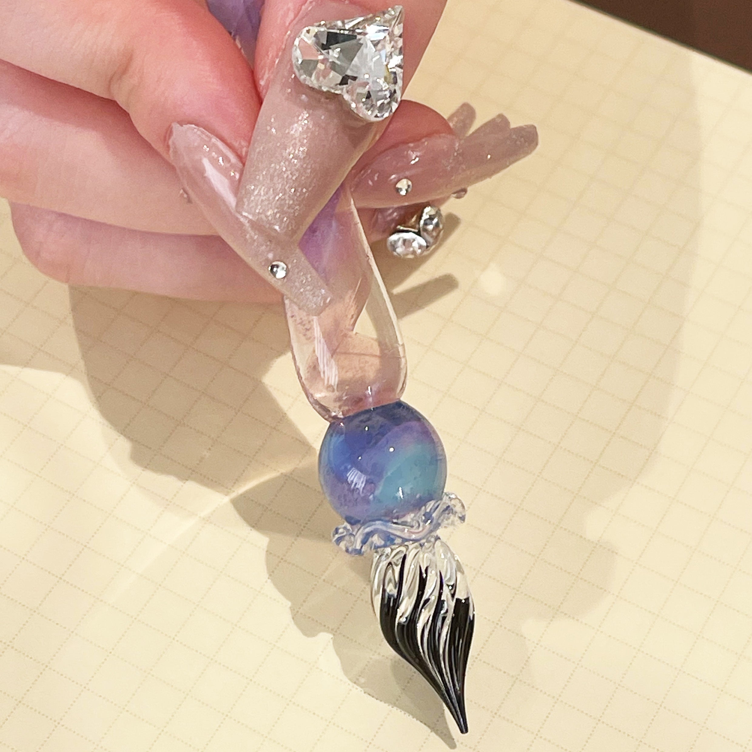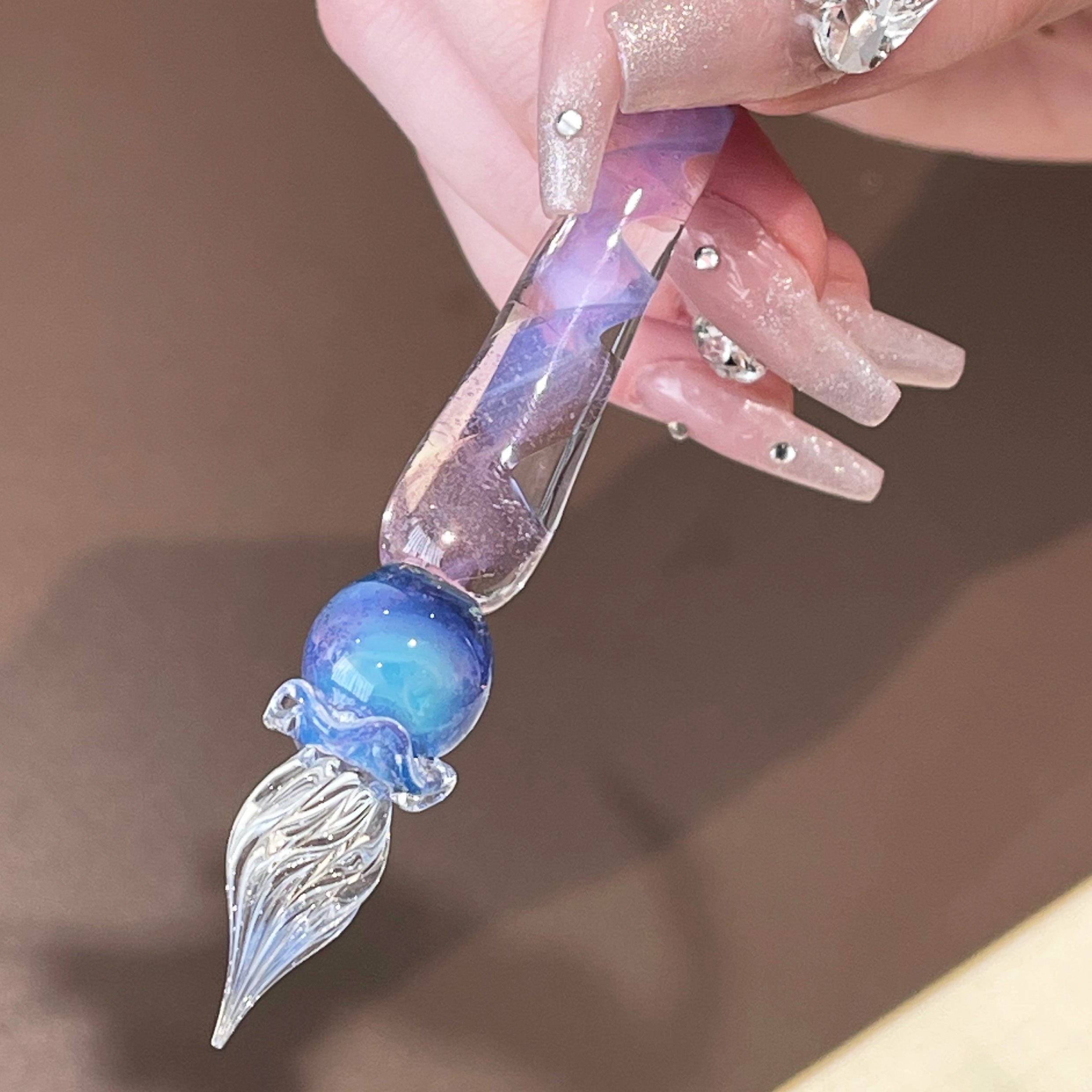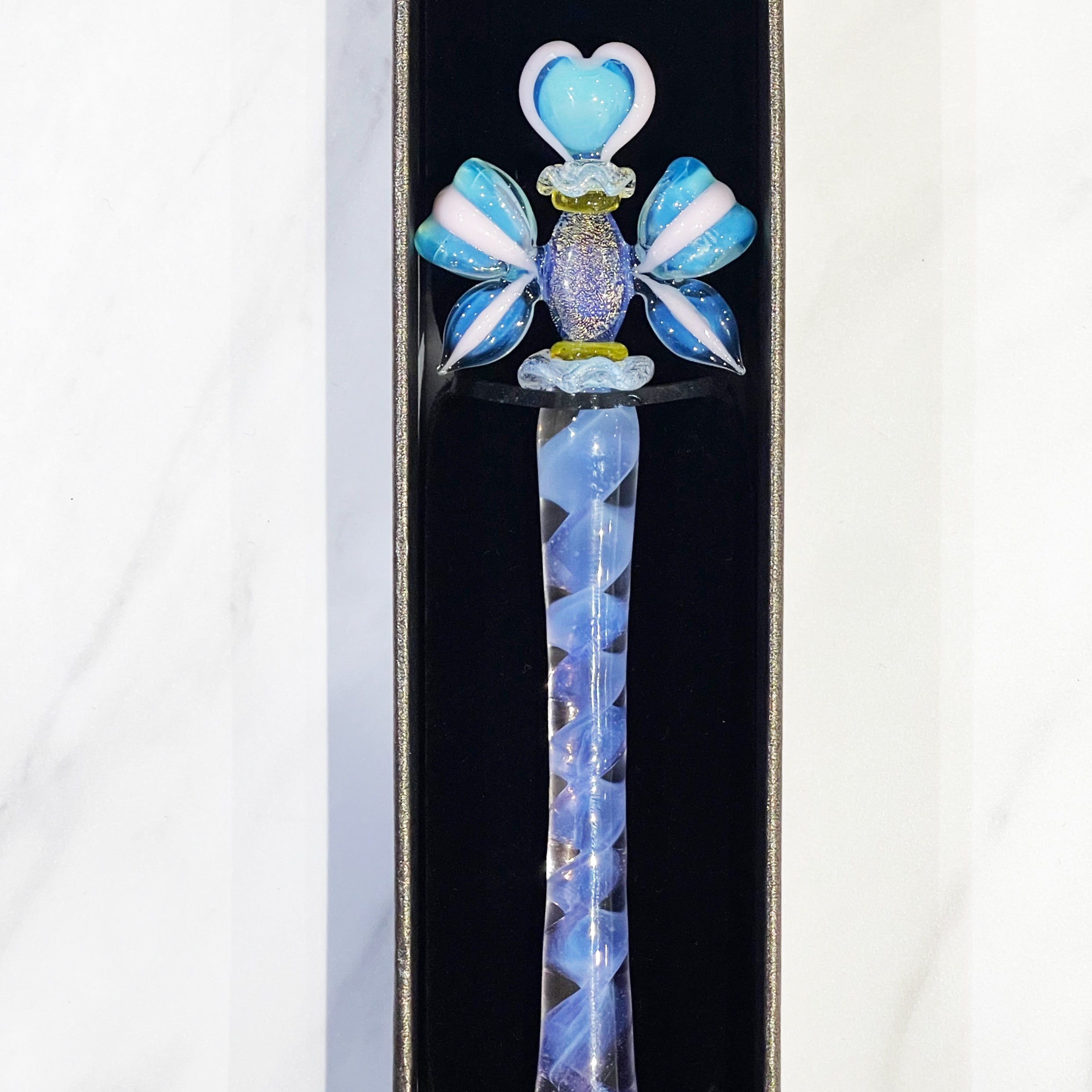 プリキュアシリーズ第 20弾「ひろがるスカイ!プリキュア」 のキュアスカイから着想を得て表現しております。実用性と芸術性を兼ね備えたガラスペンは、並木氏一人が1本ずつ全て手作りをしており、1点モノとして希少性の高いアイテムと言えます。