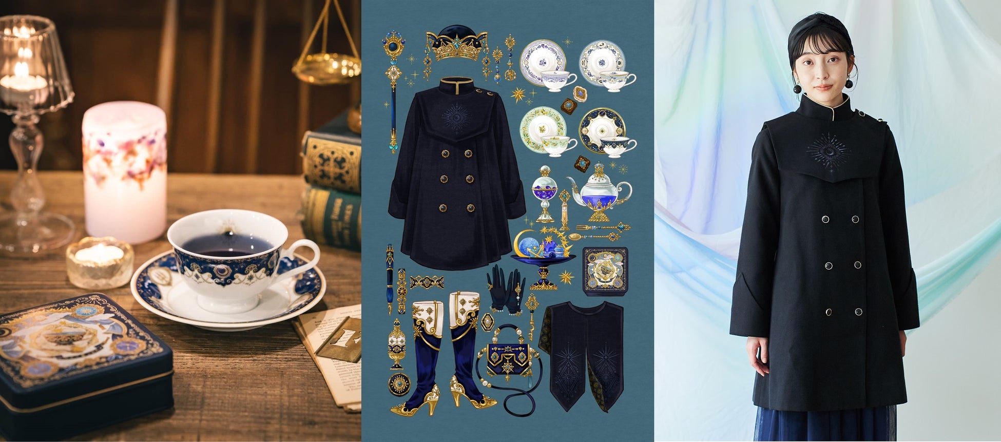 魔法部®が「日常を守りきる」をテーマに新作「日と月の紋章をまとう2-WAYコート」と「ティータイムのためのカップ&ソーサー」、「夜明けの空に彩る缶入りマジカルカラーティー」を発表
