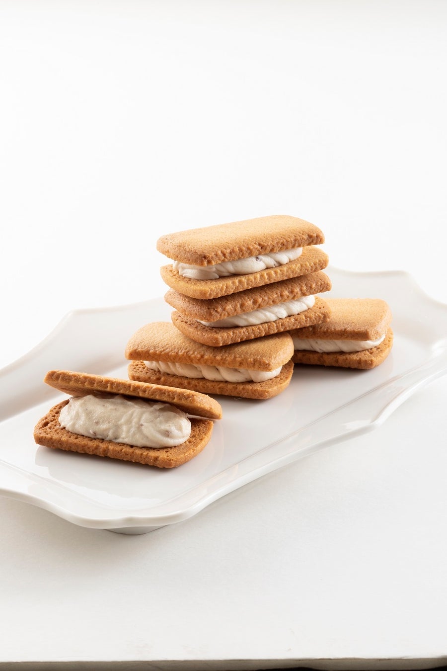 サクサクとした食感に焼き上げたクッキーに挟むクリームは、弘乳舎の国産純白バタークリームに風味豊かな国産栗のペーストを混ぜ込んだ和風のクリーム。