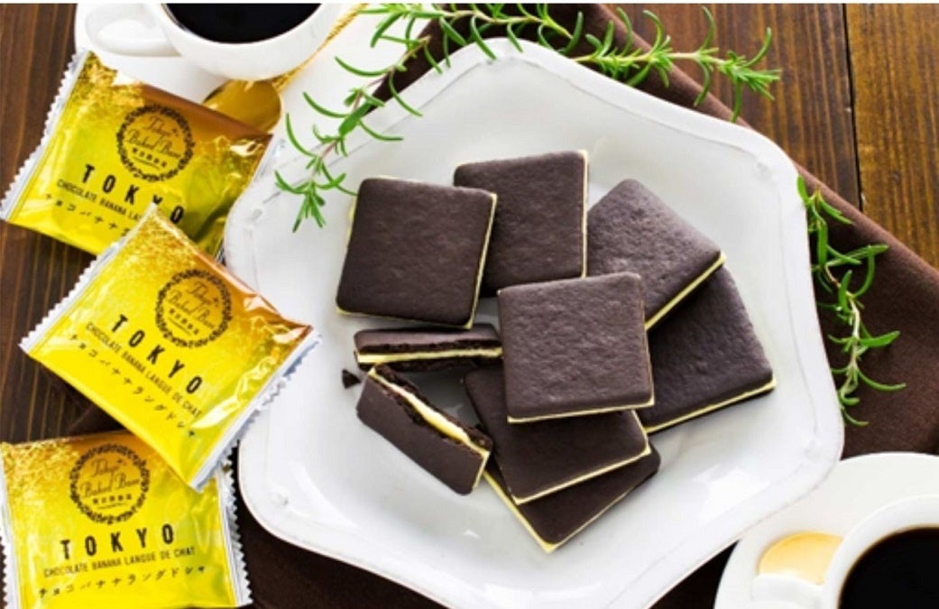 チョコレートとバナナの美味しさを、さくさくのラングドシャでお楽しみいただけるひと品です。