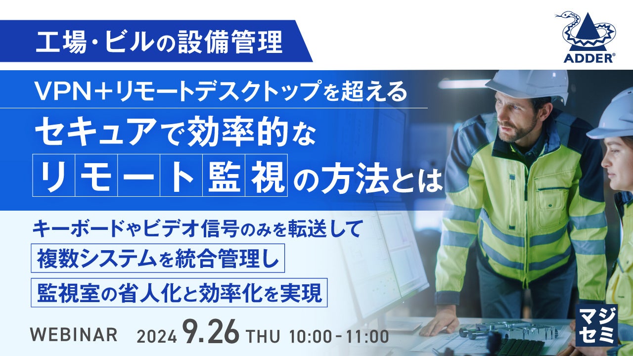 マジセミ株式会社は「工場・ビルの設備管理:VPN+リモートデスクトップを超える、セキュアで効率的なリモート監視の方法とは」というテーマのウェビナーを開催します。