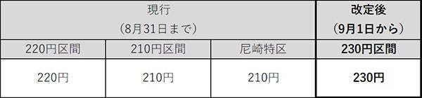 ※大阪特区・神戸特区を除く全線の上限運賃を240円へ変更します。