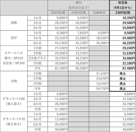 ※PiTaPa登録型割引(1か月定額サービス)は改定後の運賃が適用されます。