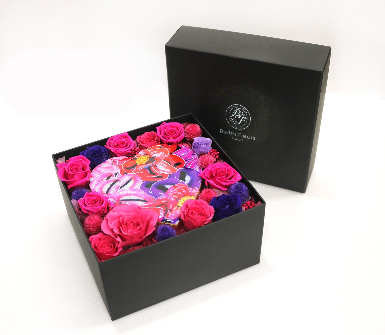 鎌谷徹太郎氏と今野亮平氏の2人の感性が融合された、本イベントのために特別にご用意したプリザーブドのボックスフラワーです。母の日に向けて、美しさと強さを兼ね備えた女性をイメージとした作品となっております。