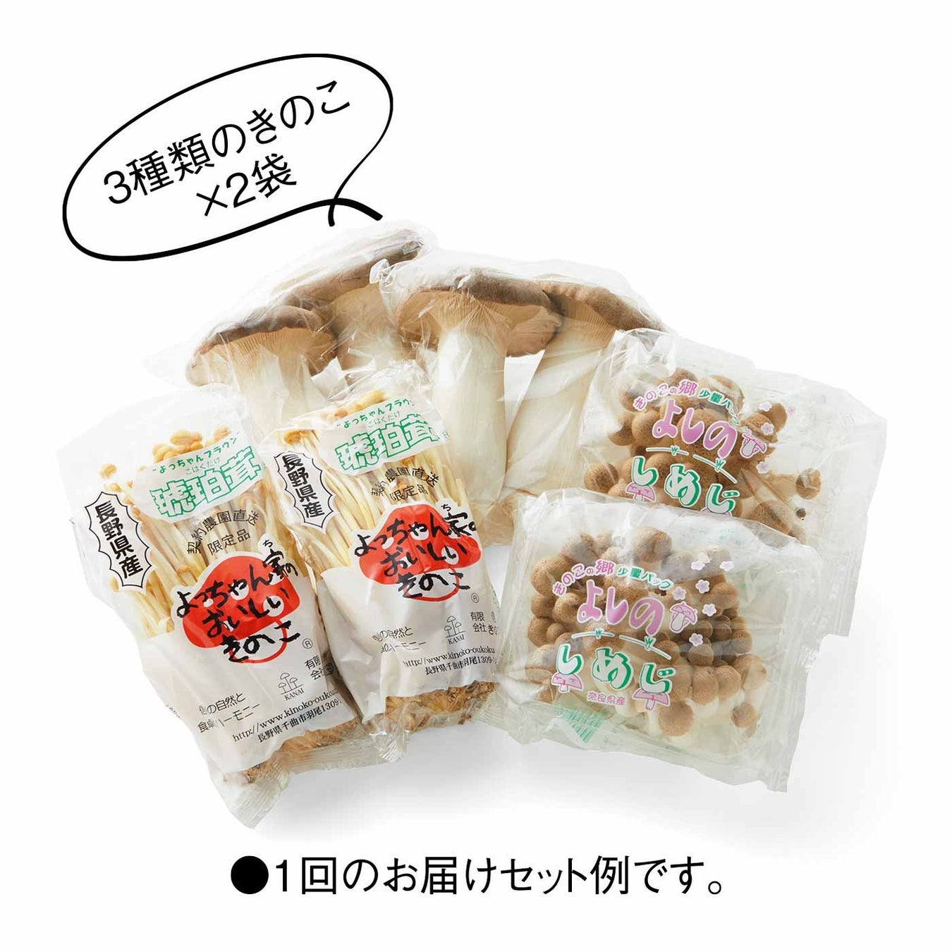 ・お届け内容 / 生きのこ3種(種類違い)×2袋(計6袋)