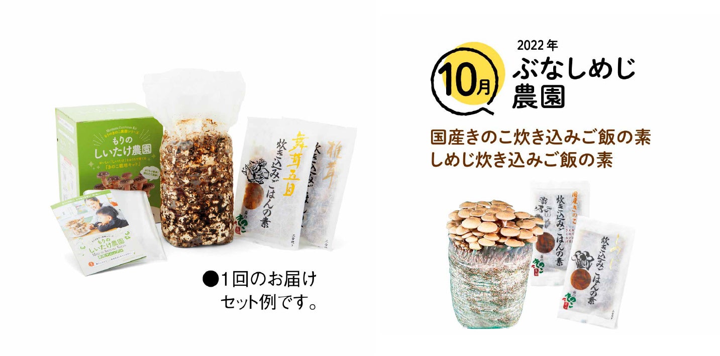 自宅で簡単にきのこを栽培できるキットです。収穫したきのこを味わうことができます。半年間毎月異なるきのこと、それぞれにあった炊き込みご飯の素が届きます。