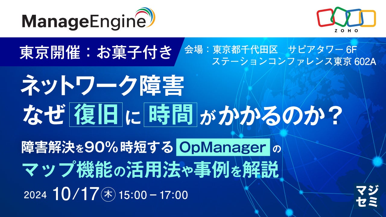 マジセミ株式会社は「ネットワーク障害、なぜ復旧に時間がかかるのか?【東京開催:お菓子付き】」というテーマのセミナーを開催します。