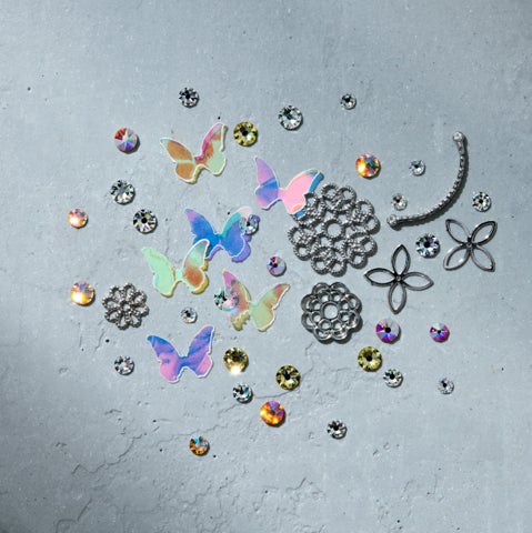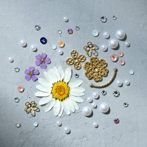 ◆メタリックなパーツやドライフラワーなど3種のアクセサリーパーツから選べます。