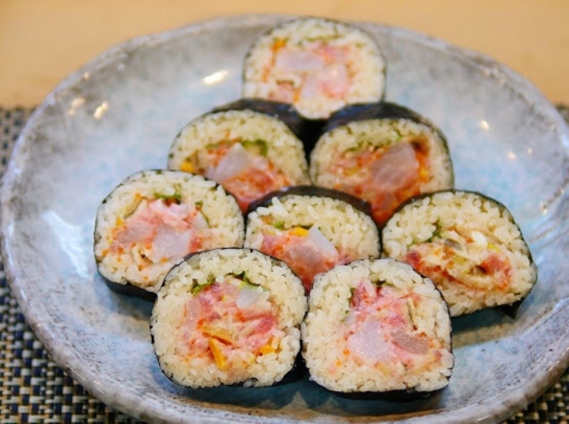 彩り鮮やかな本格江戸前鮨が楽しめる<銀座 鮨たじま>。鮨の激戦区・銀座で勝負してきた大将の目利きが感じられる名店です。今回は<銀座 鮨たじま>の一番人気、ネギトロ、穴子、とびっこ、イカ、うに、海老、子持ち昆布等を太巻きで巻いた「贅沢巻き」をご紹介します。