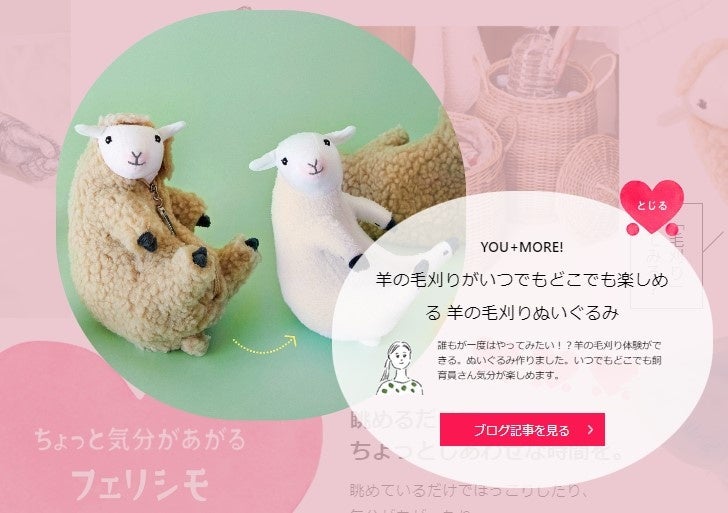 フェリシモ「走る百貨展」の世界観をさらに広げた特設サイトには電車に乗り切れなかった商品たちも続々と登場。開発秘話や細かすぎる企画担当者のこだわりポイントも読むこともできます。欲しいものがすぐに見つかる整列されたショッピングサイトとは対照的に、宝箱をひっくり返したようなビジュアルから続々と商品が飛び出す、これまでにないオンラインショッピングサイト。楽しく眺めて探索しながらお気に入りに出会えます。