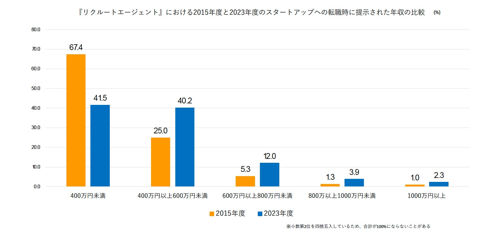 スタートアップへの転職時の提示年収水準:400万円未満の割合が減少