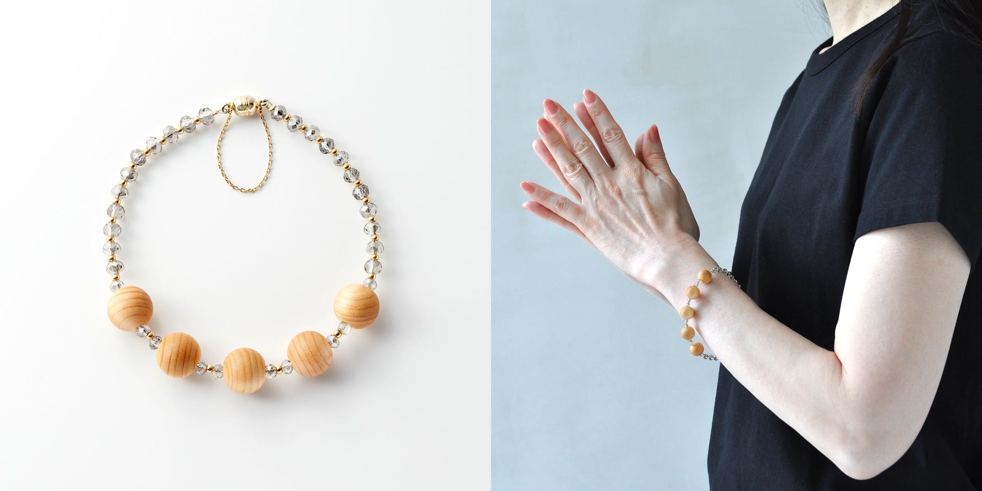 開山1200年記念で再建された「高野山壇上伽藍中門」に使用された霊木(檜/ヒノキ)で作られた「LX 高野山からの贈り物 霊木明星ブレスレット」が高野山恵光院で販売を開始