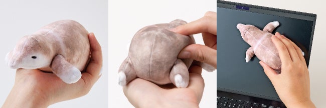 眠たげなおめめがチャームポイントのモグラは、おなかの部分が液晶画面や棚のほこりをきれいにふけるクリーナーになっていて、汚れたら手洗いできます。さわるともちもちとした触感が楽しめるので、普段はデスクの上で愛でることができます。
