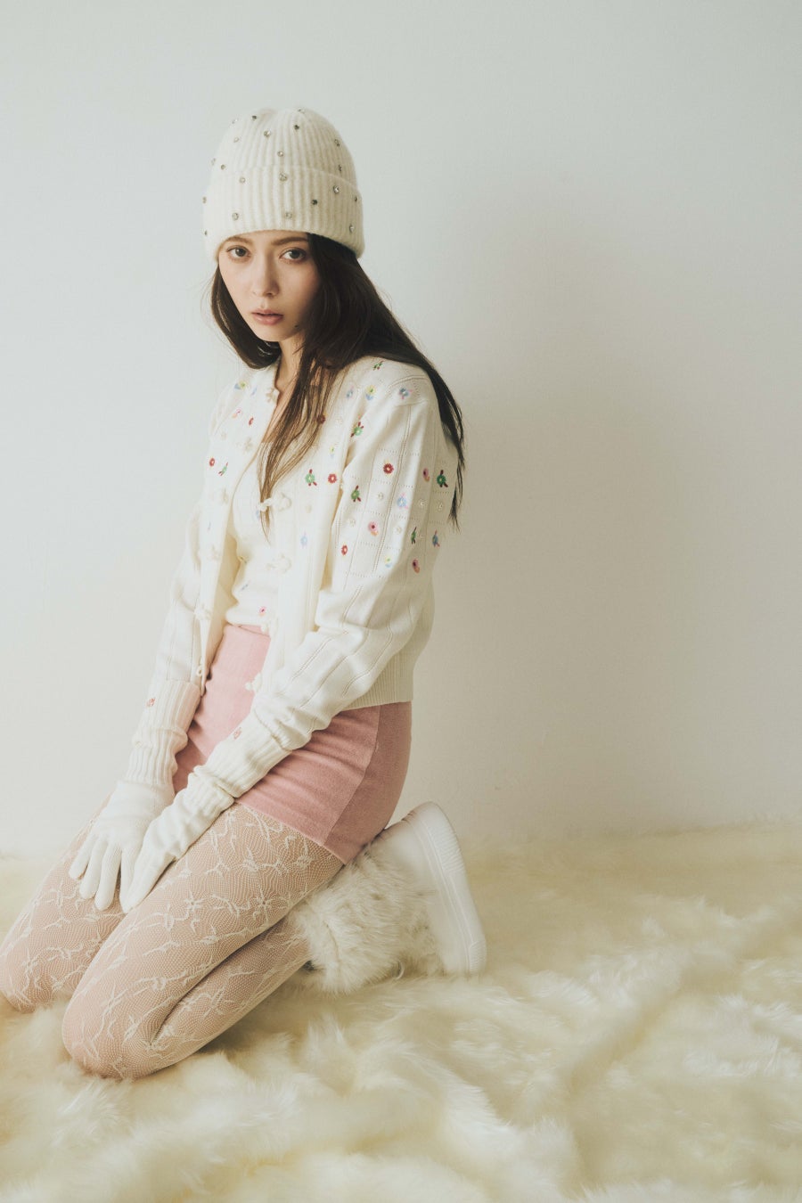 ピンク、ふわふわ、チュールなどのフェミニンなエッセンスをたっぷりと重ねながらも、品のいい色と質感でクレバーな大人のムードを表現
