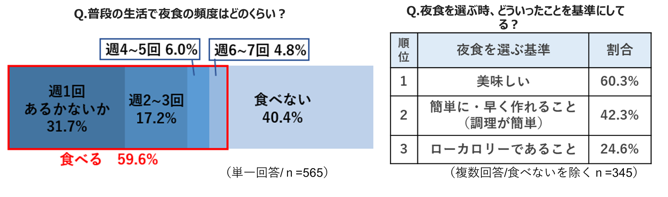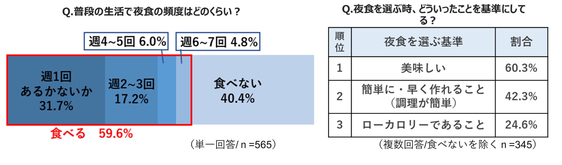 夜食を「食べる」派は約6割、選ぶ基準は味・調理の簡単さに続いて「ローカロリー」