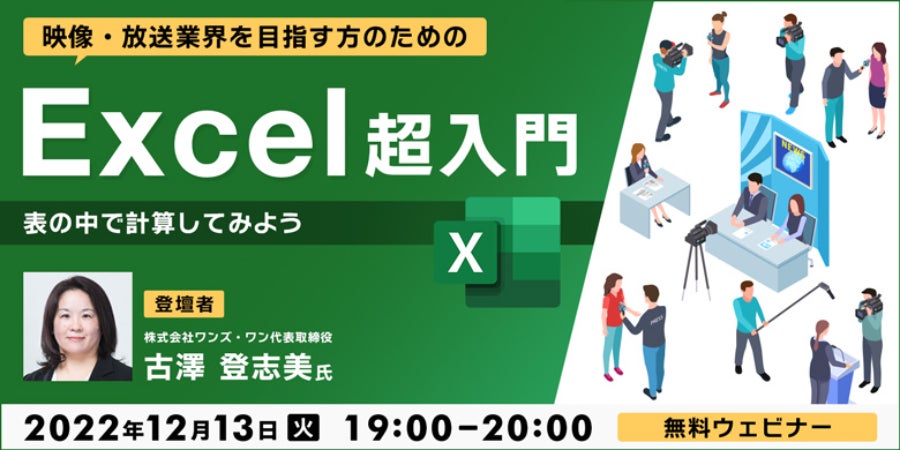 【映像業界をめざす方向け】表計算機能の使い方を学ぶ!12/13(火)無料オンライン講座「Excel超入門」