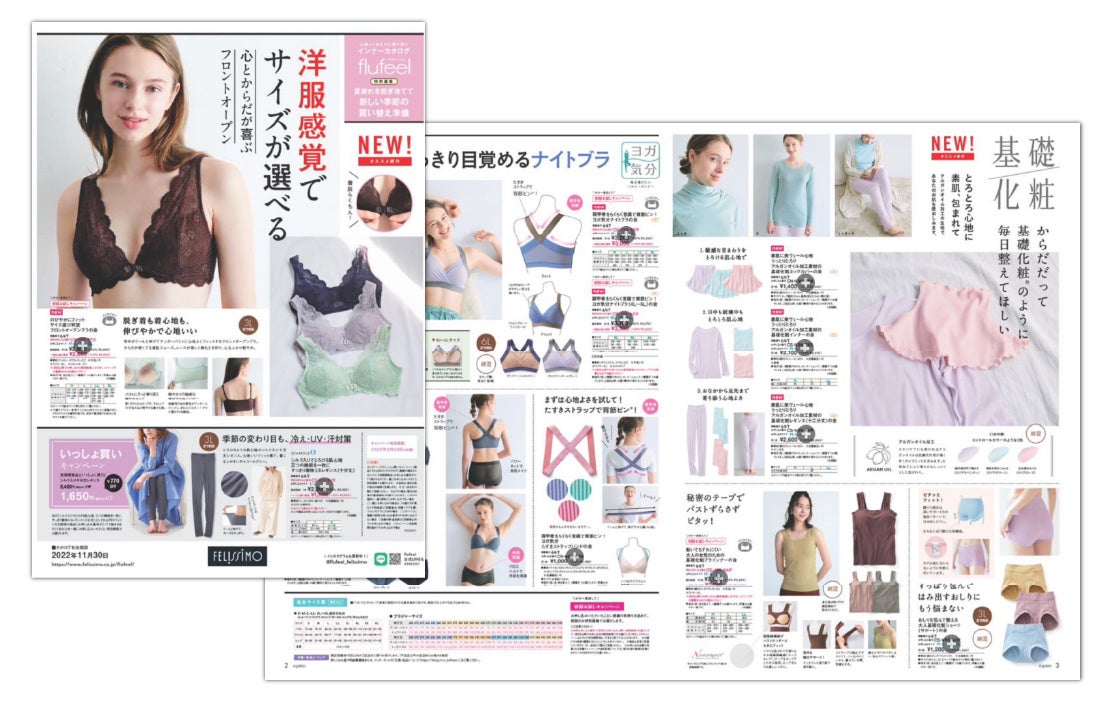 フェリシモが展開する、インナーブランド「flufeel[フラフィール]」は、2022年秋の新作から3シリーズを先行発表。 9月6日よりウェブサイトで販売しています。新作の1つ目は、着脱しやすいフロントホック仕様の「のびやかにフィット サイズ選び解放 フロントオープンブラの会」、2つ目は、販売累計160万枚を突破した人気シリーズ「ヨガ気分®ブラ」からすっきり目覚める「肩甲骨をらくらく意識で背筋ピン! ヨガ気分ナイトブラ」、3つ目は「アルガンオイル加工素材の基礎化粧」シリーズです。お得に購入できる初回お試しキャンペーンも開催しています。