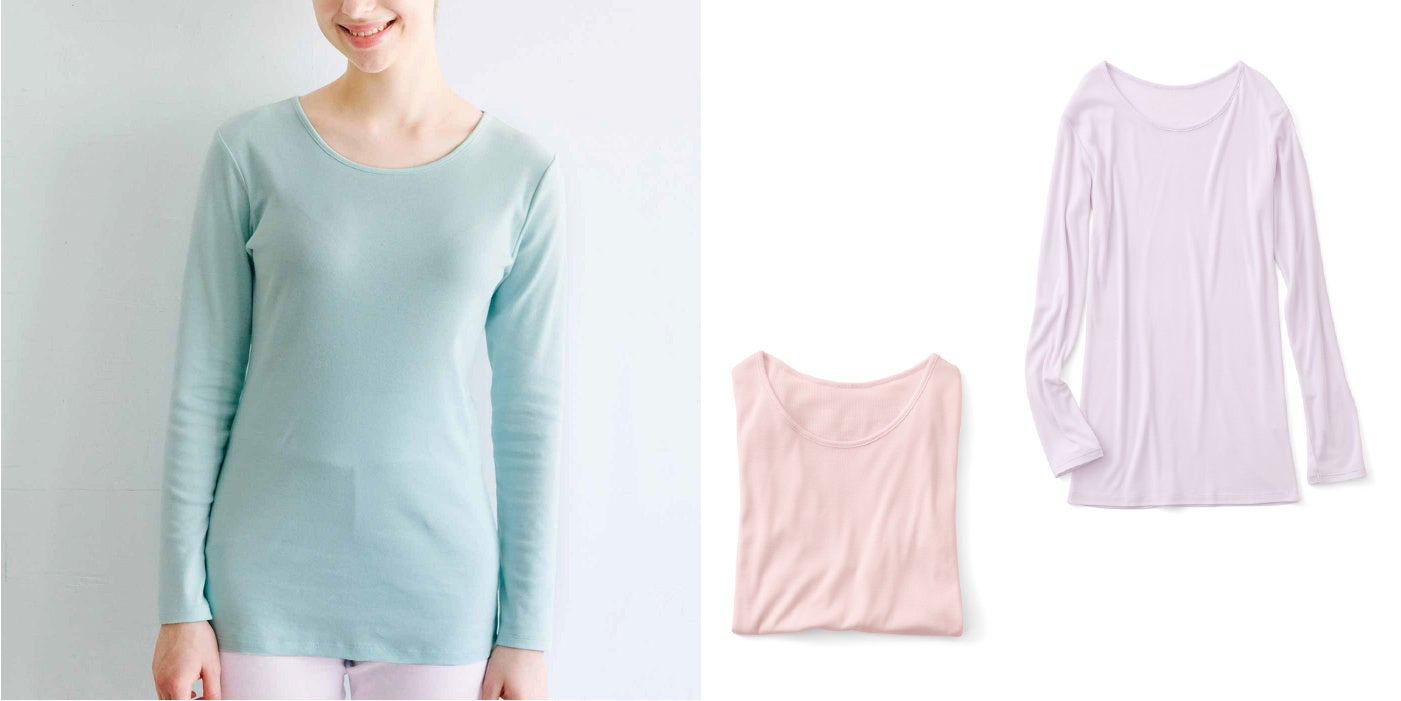 アルガンオイル加工を施したとろけるような肌心地のインナーです。秋冬の重ね着のチクチクも心地いい肌当たりで回避できるので、これからの季節のインナーに活躍します。