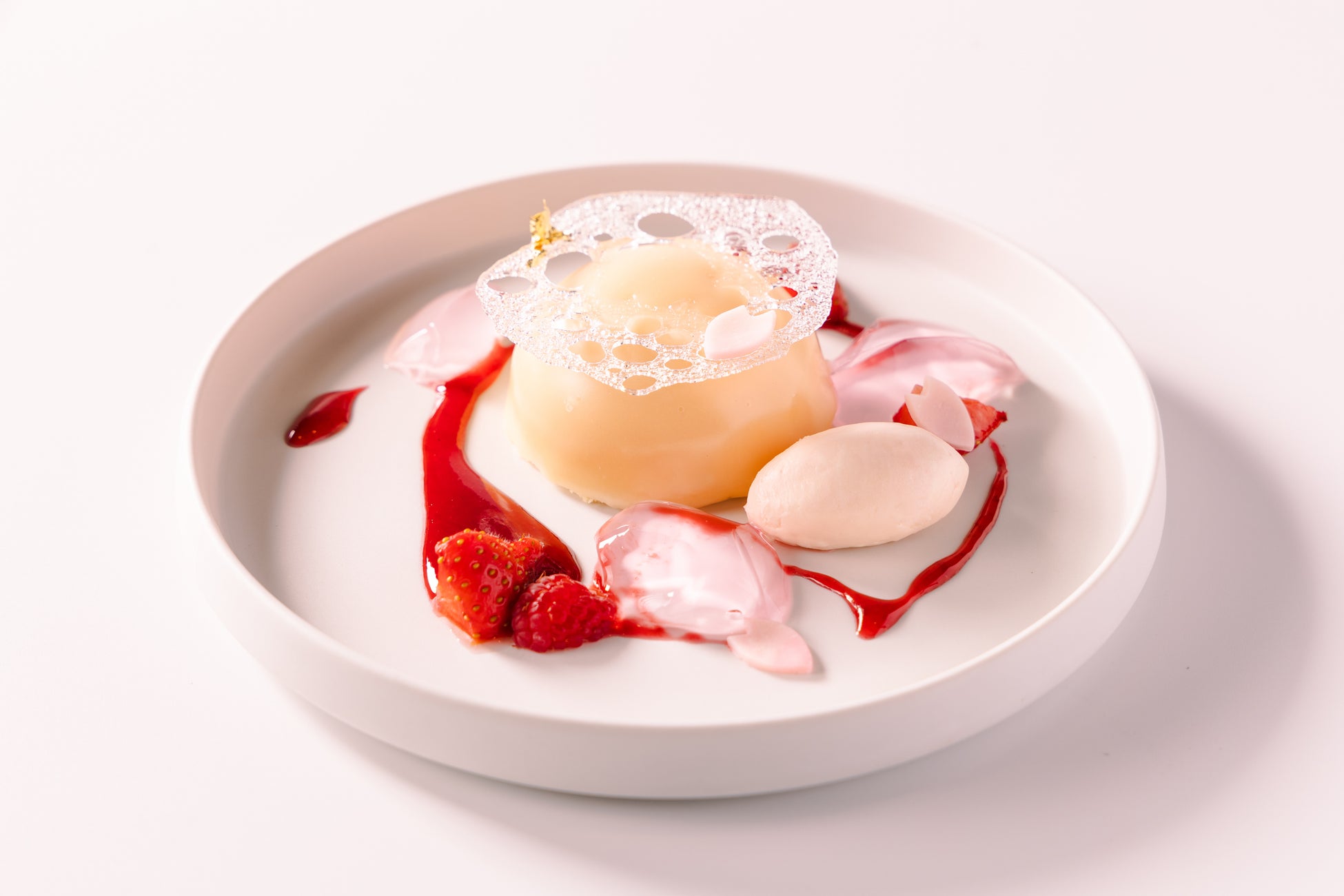 グリオットチェリーの甘酸っぱさと桜ジュレの香りが口の中に広がり、 パンナコッタのなめらかさが美味しさをさらに引き立てます。