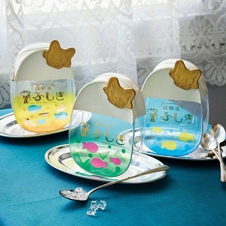 デザインは〈グリーンアイ〉〈イエローアイ〉〈ブルーアイ〉の3種類です。ソーダの色はそれぞれ神秘的な猫の瞳の色を表現しています。