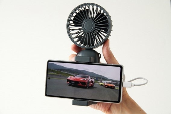 USB Type-Cによる給電なので、対応端子を備えたiPhone 15シリーズや各種Android端末のほか、PC、モバイルバッテリーなどからも給電できます。さらに5段階の風量調整付きの優れものが1450円という驚きの価格で手に入る!